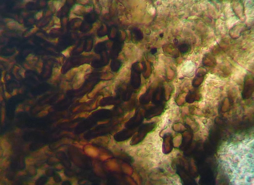 Und die drei "ohne" sind keine Fremdsporen, sondern überreife Sporen, deren hyaline Anhängsel bereits kollabiert sind.