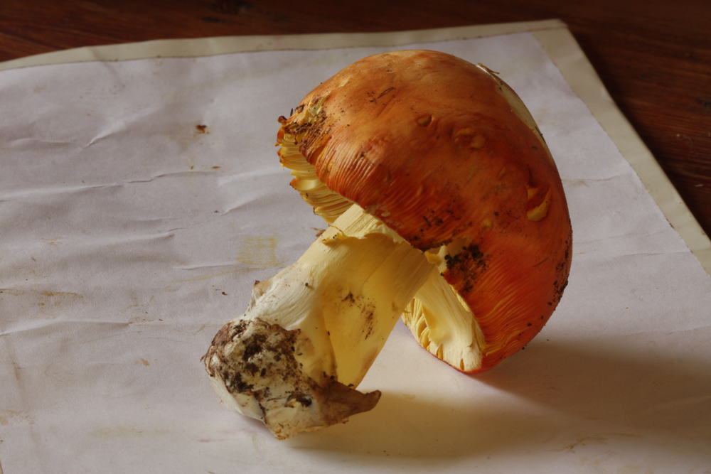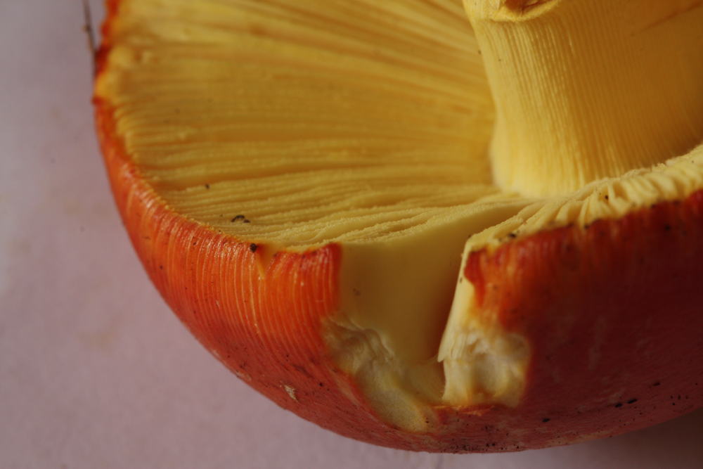 Verwechslung: evtl. mit Amanita crocea, der jedoch weiße Lamellen hat
