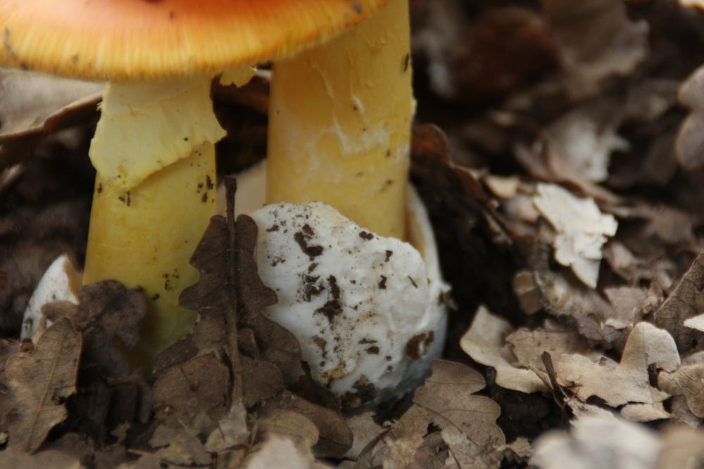 Stiel: gelblich in weißer Volva mit gelber herabhängender Manschette
