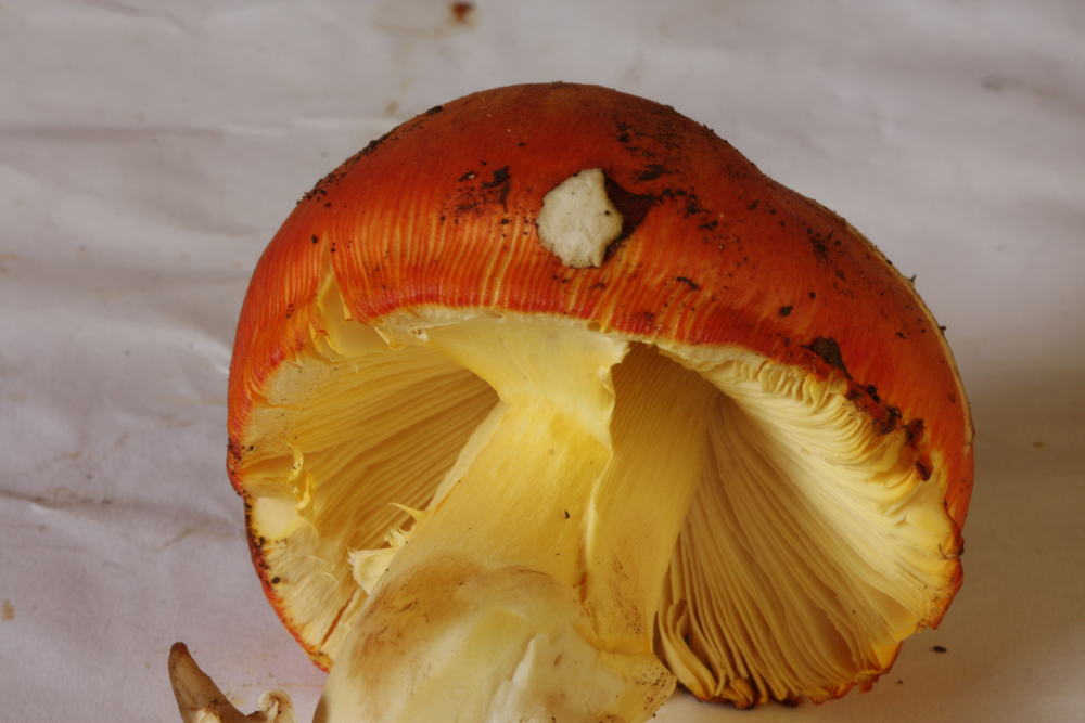 Verwechslung: evtl. mit Amanita crocea, der jedoch weiße Lamellen hat