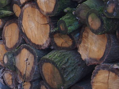 Das Bild von den gestapelten Stämmen hat mit dem abgebildeten Stamm nichts zu tun. Das sind wohl Eichenstämme.