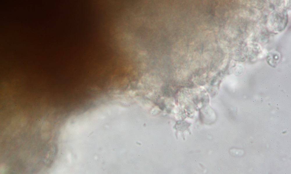 Gestern habe ich angefangen etwas zu mikroskopieren und auch kleine Erfolge gehabt, aber das Problem sind die Steine, die man beim abkratzen des Pilzes unter dem Deckglas bekommt. Egal das wäre ja eigentlich kein Problem, wenn da nicht die zu klein geratenen Basidien wären, die dann auch noch eine Unmengen an Sporenträger (denke es sind 7) haben.