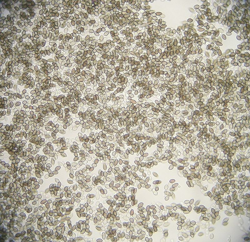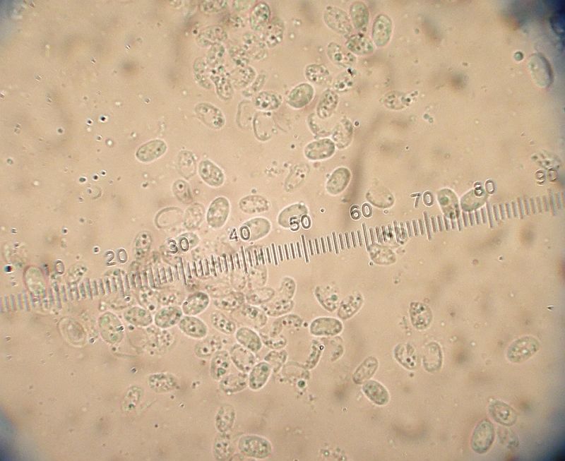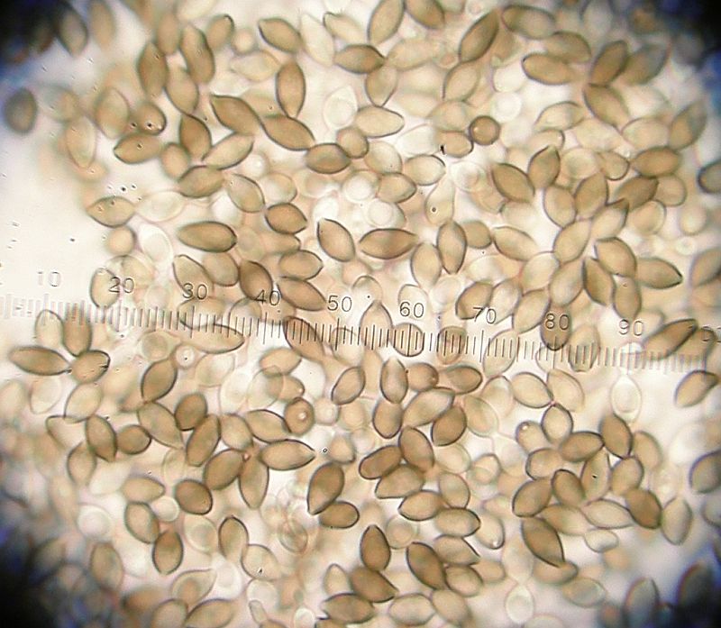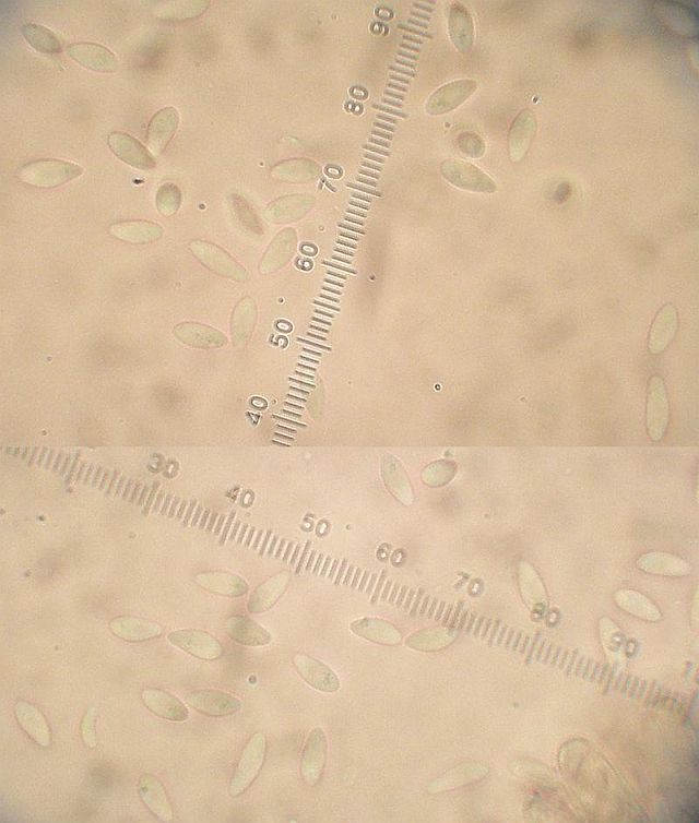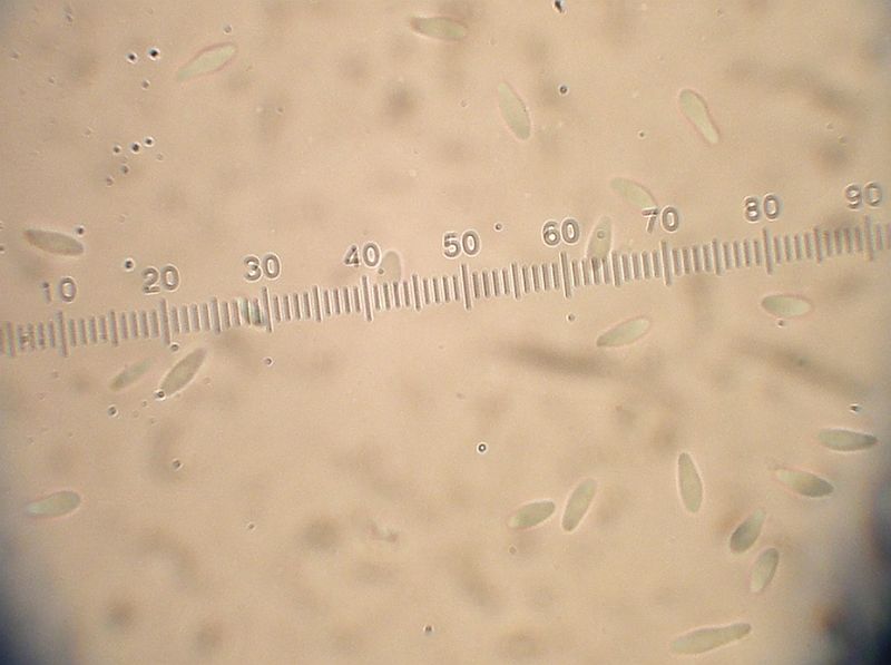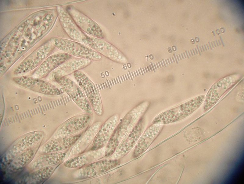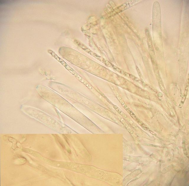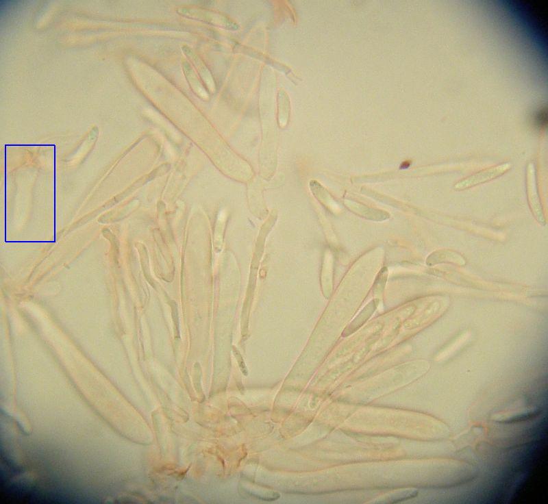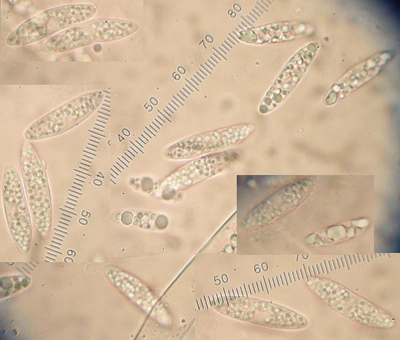 im Schnitt so 22x5 aber recht variabel; Inhalt aus vielen Vakuolen, wobei eine Stelle in der Mitte ausgespart ist; im Ascus stärker gekrümmt, strecken sich im freien.