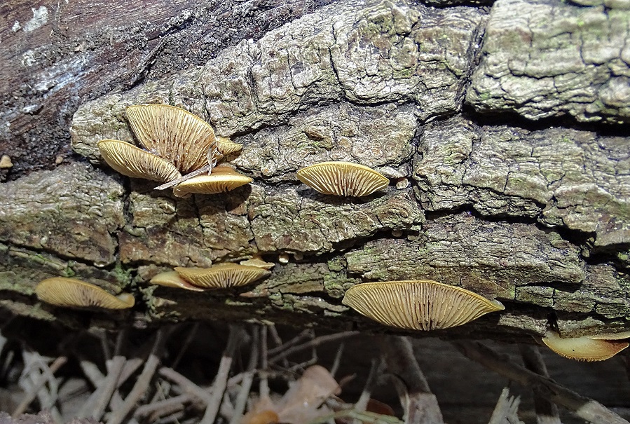 Oder du hast da noch deutliche, violettbraune Schuppen auf den Hüten. Dann wäre es Crepidotus calolepis.