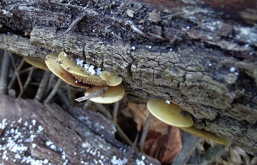 Oder du hast da noch deutliche, violettbraune Schuppen auf den Hüten. Dann wäre es Crepidotus calolepis.