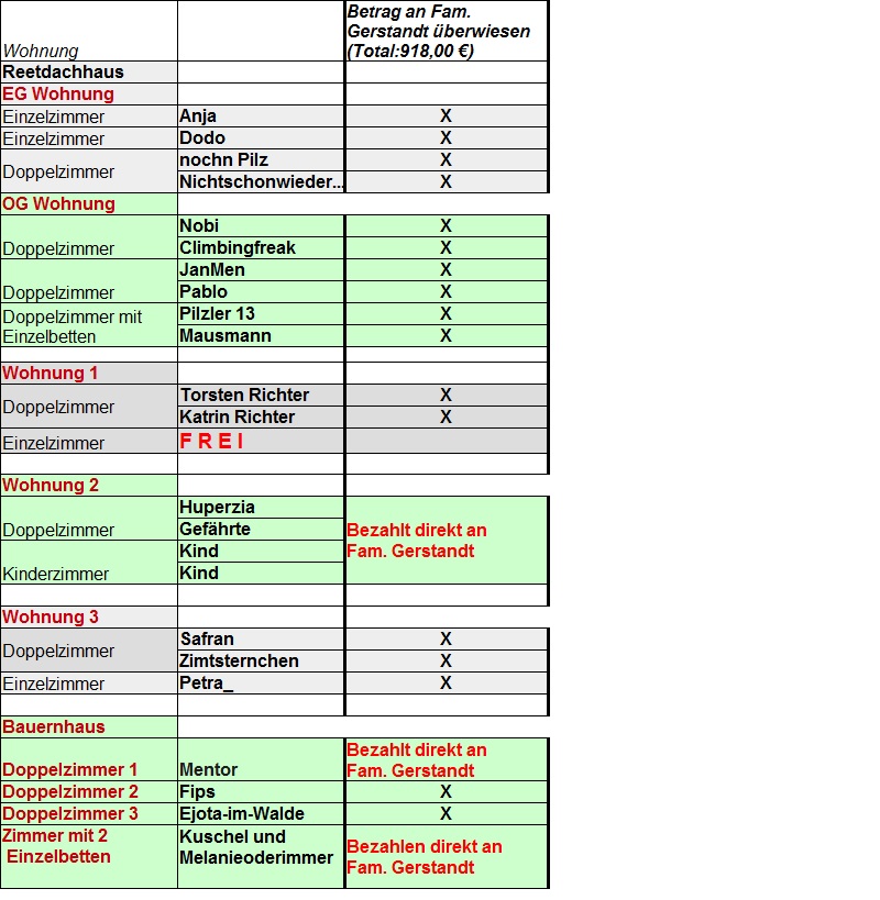 ETWAS MÖCHTE ICH NOCH SAGEN: Bitte beachtet den Plan - wer zuerst anreist nimmt doch bitte den Schlüssel für "seine" Wohnung entgegen.......sonst gibt es ein Durcheinander.