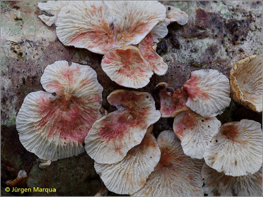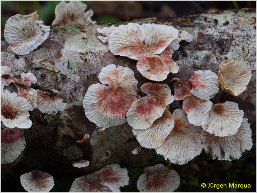 Rosarote Flecken auf Plicatura crispa