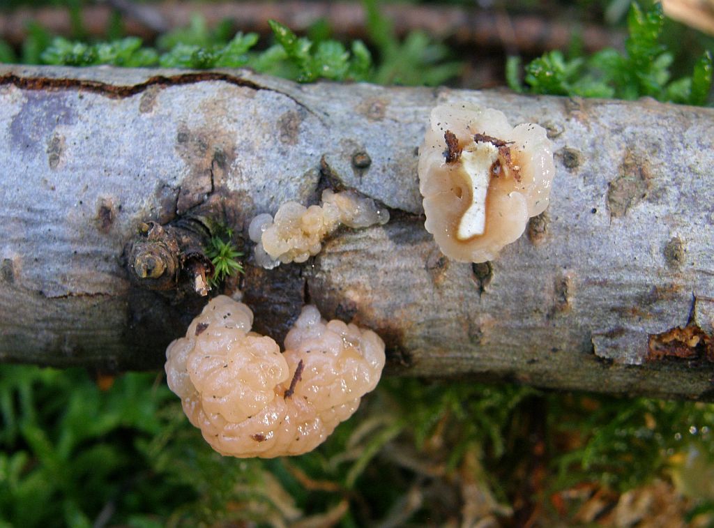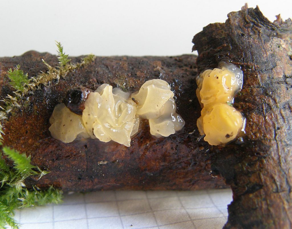 Anfangen wir mal mit was Anderem, nämlich dem Glibberkram. Da bestimmt sich vieles auch im Vorbeigehen, wie zum Beispiel Tremella encephala = Alabaster - Kernling