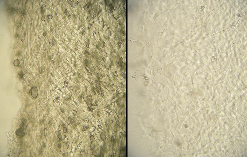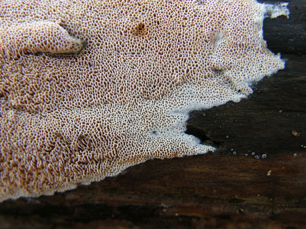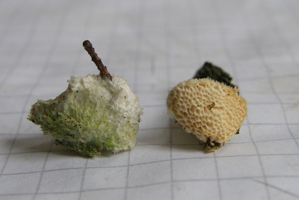 Makroskopisch scheint das erstmal total unterschiedlich auszusehen, aber Porenform, Form der Einzelhütchen und Hutoberfläche: Da gibt es schon Parallelen.