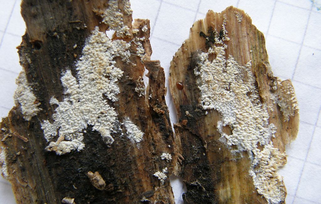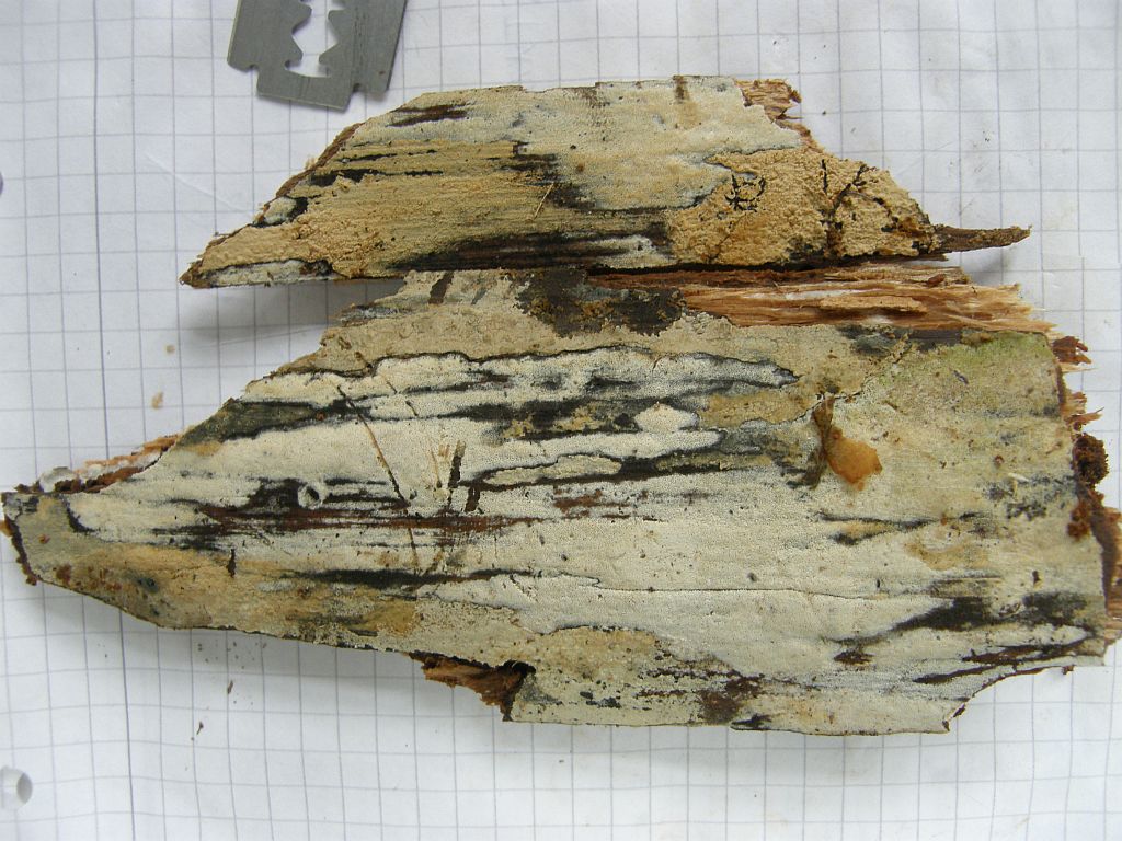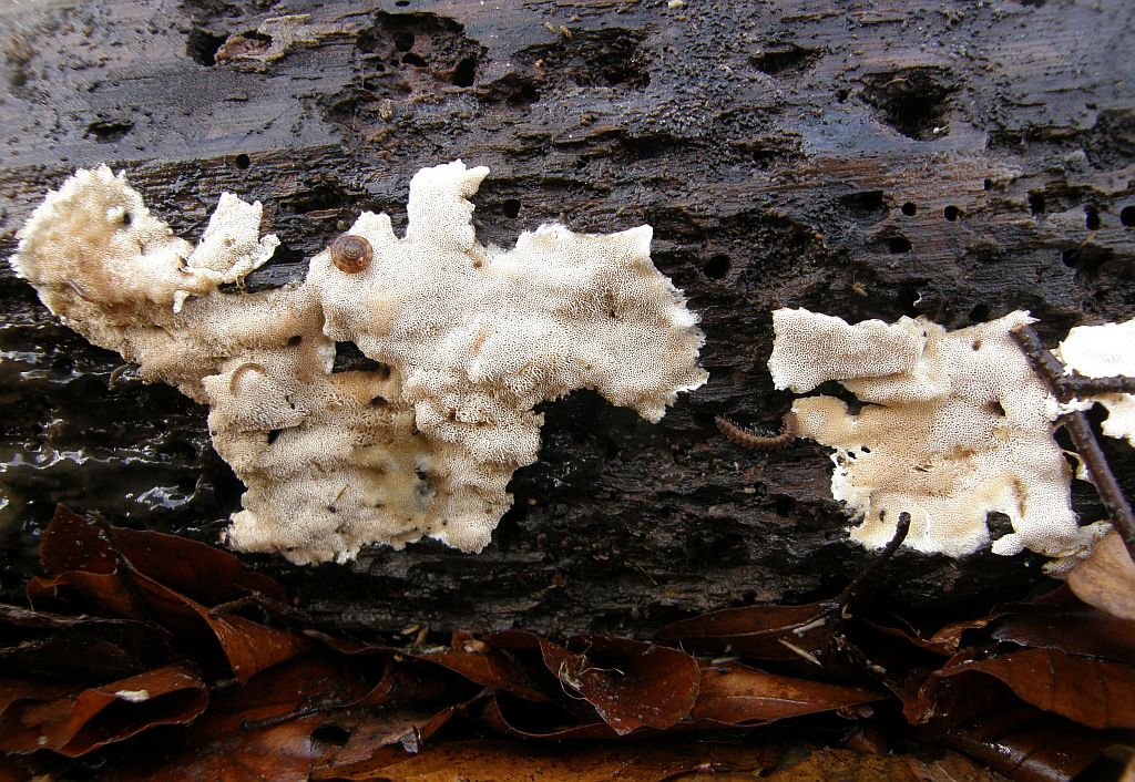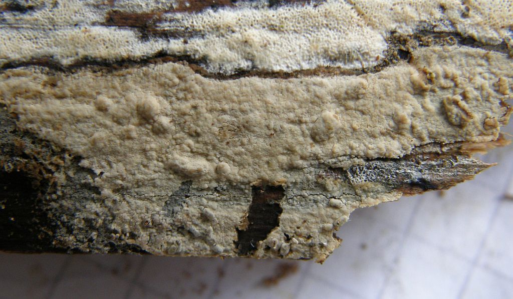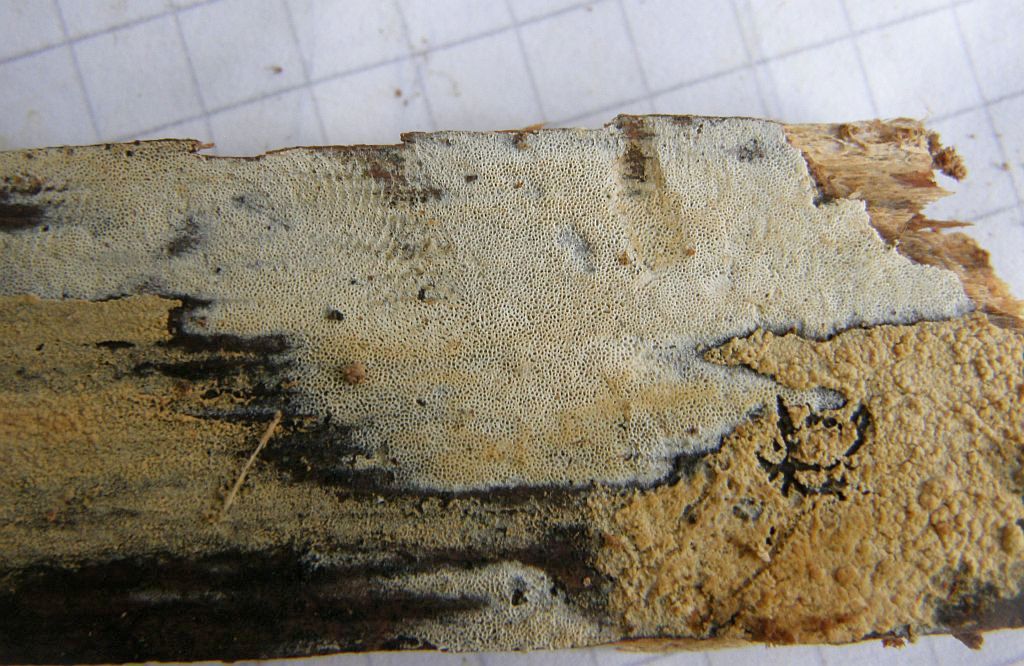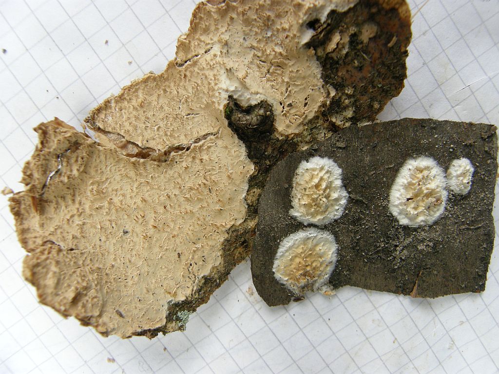 Der folgende hat mich ewig im kreis herumgeführt.Fibrodontia gossypina = Zähnchen - Rindenpilz ---> Schizopora paradoxa = Veränderlicher Spaltporling (REV.: DÄMMRICH)