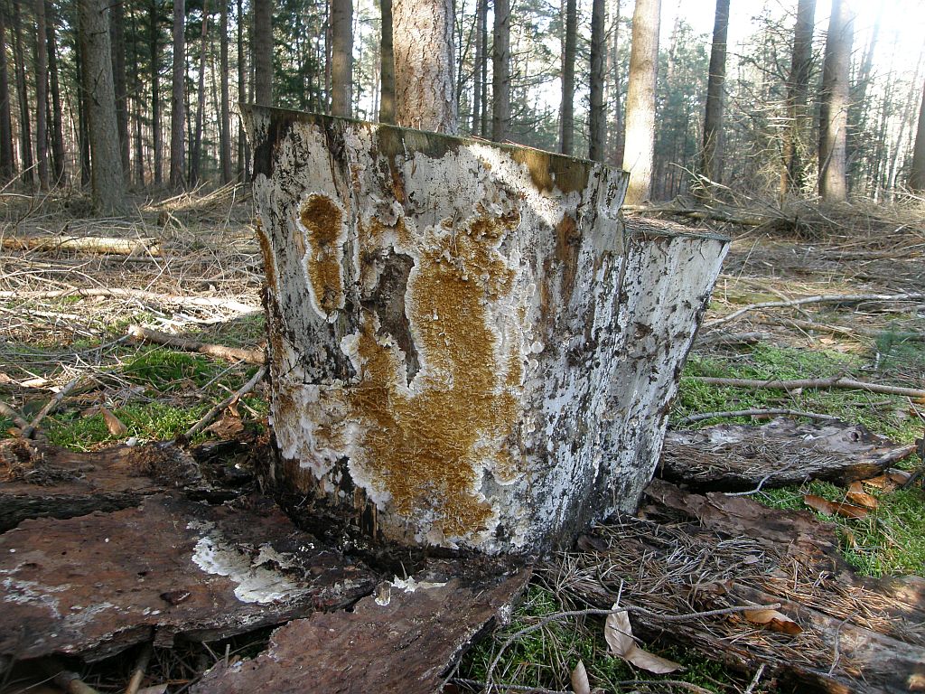 Stammstück von Nadelholz (wohl Fichte).
