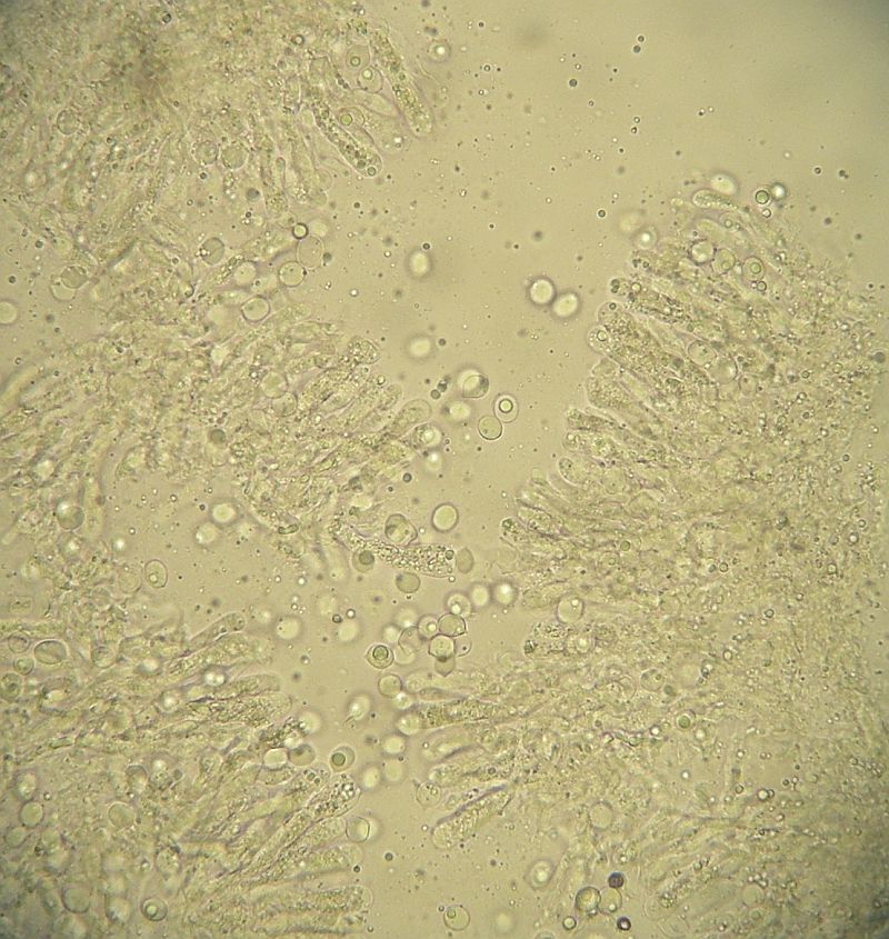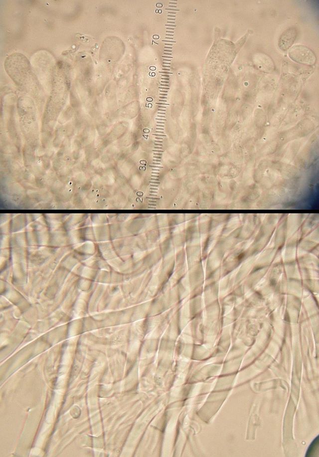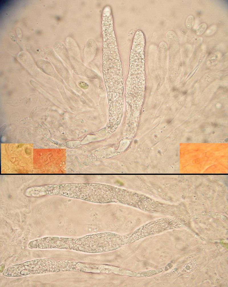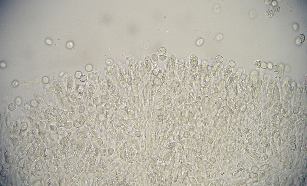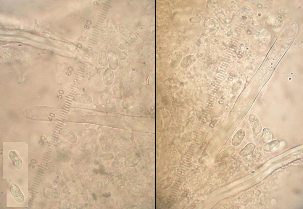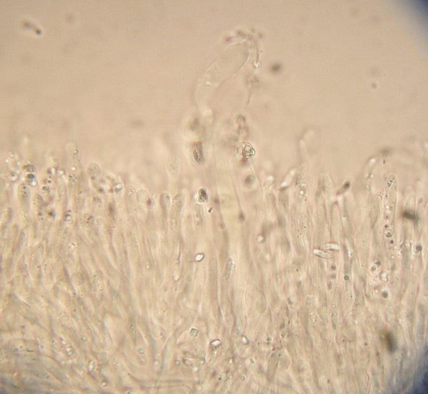 Das ist also der mit den länglichen, dünneren Sporen und den moliniformen Zystiden.