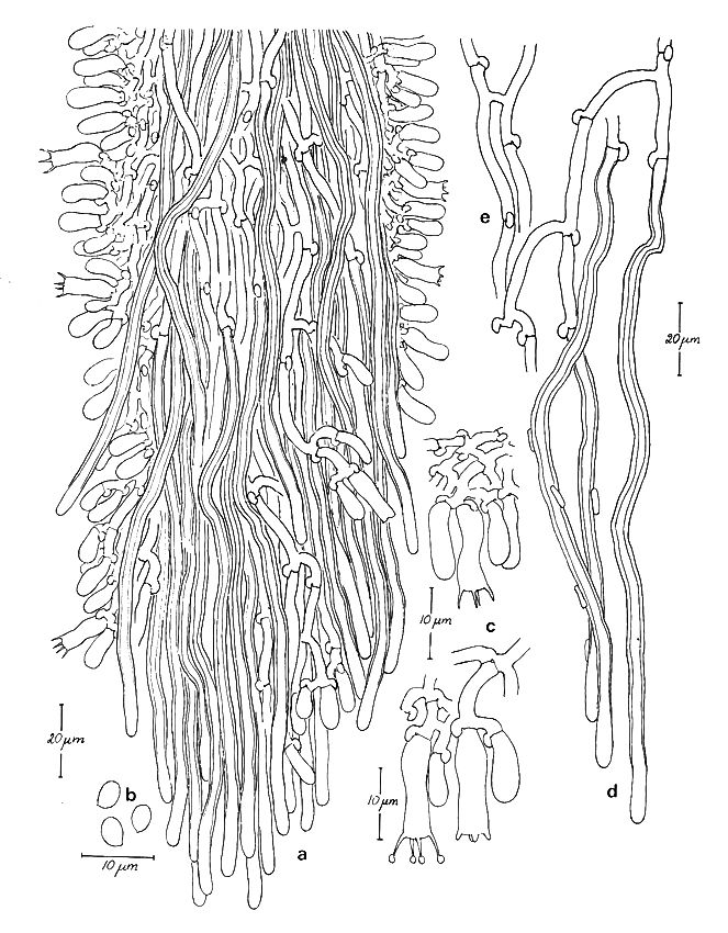 Die Hyphen im Subikulum sind übrigens dünn- bis dickwandig, reich verzweigt und tragen reichlich Schnallen.