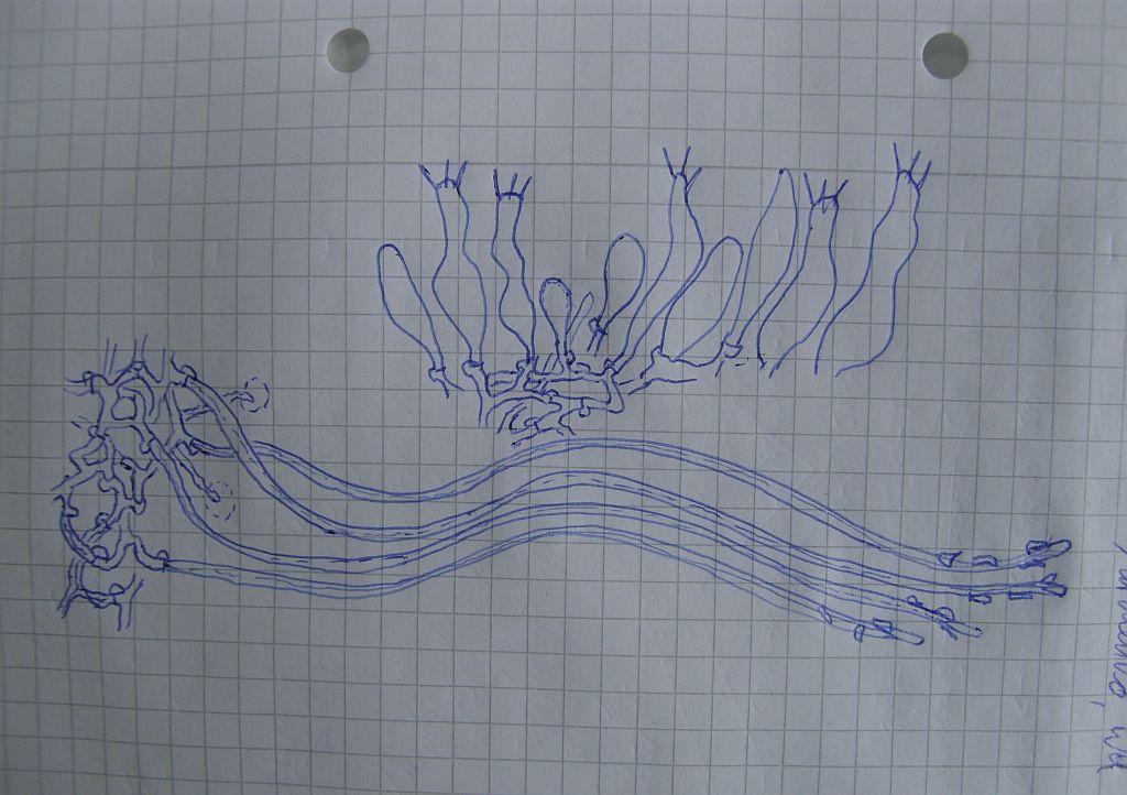 Sieht erstmal aus wie eiine Hyphodontia, hat aber erstens gar keine richtigen Zystiden, zweitens eine recht extravagante Basidienform und drittens kein wirklich monomitisches Hyphensystem.