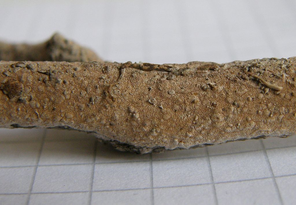 An liegendem Laubholzast; einige der Fruchtkörper sind trotz guter Durchfeuchtung ziemlich am Ausblassen, was eventuell nicht nur altersbedingt sein muss, sondern einfach zur Variationsbreite gehört.