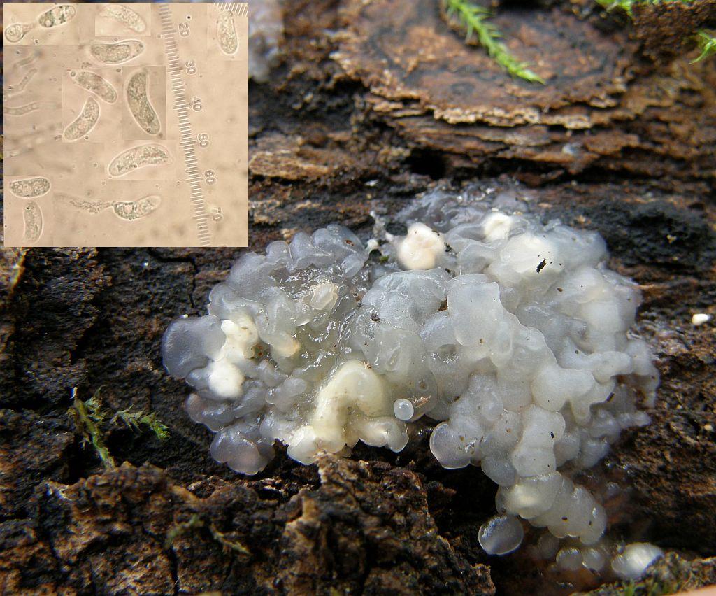 Mikroskopisch ein Pilz mit stark gelatinöser Trama, teils "pelzigen" Hyphen und Septen ohne Schnallen.