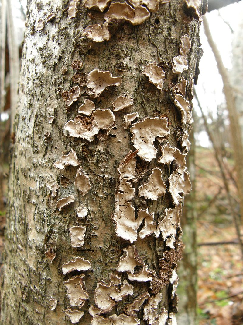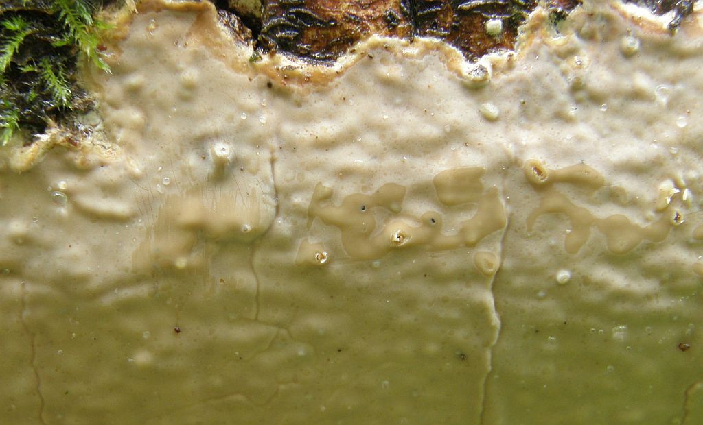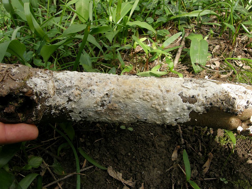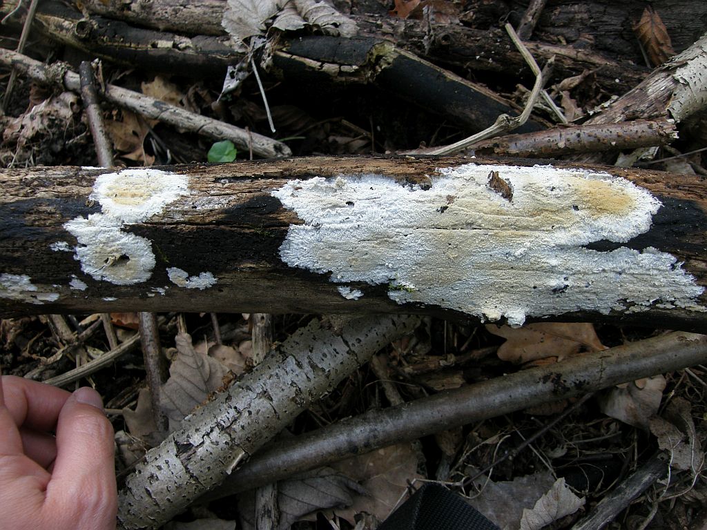 Bei der Wuchsweise und an solchem Substrat sollte man nicht mit Steccherinum oreophilum rechnen, der sich im Grunde aber nur durch vorhandene Schnallen von Irpex lacteus unterscheidet.