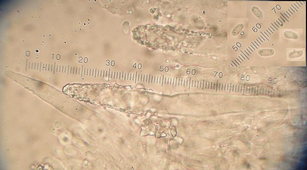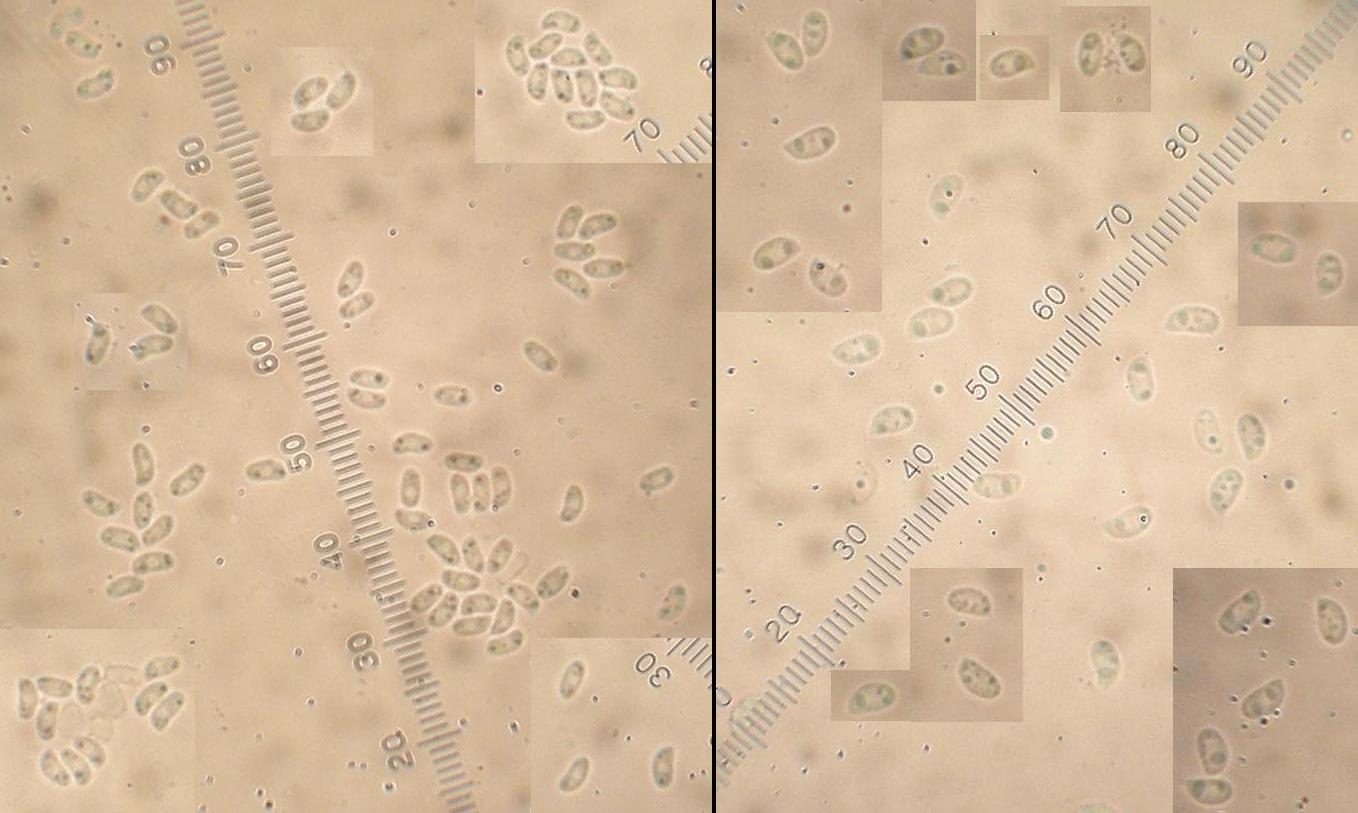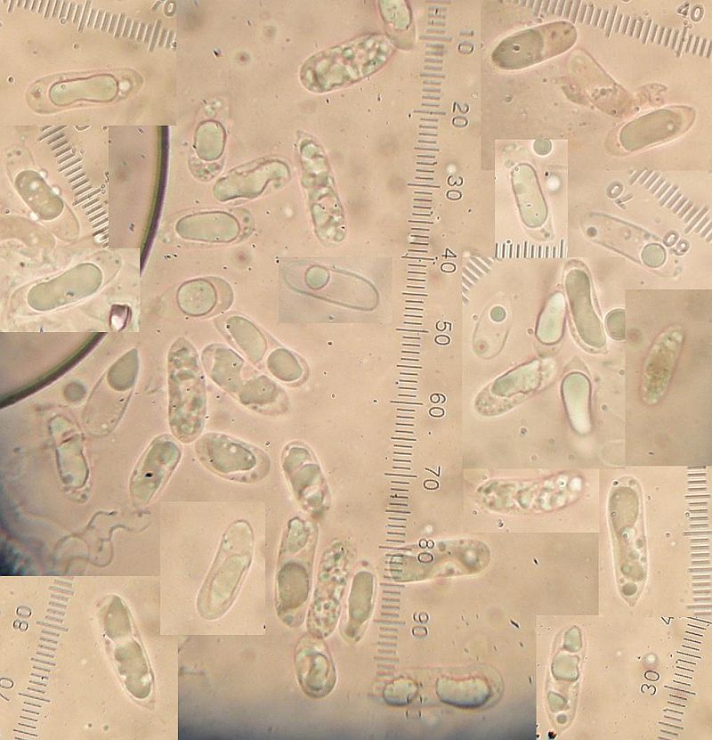Sporen waren kaum zu finden, aber die wenigen waren ausreichend groß und schlank elliptisch.