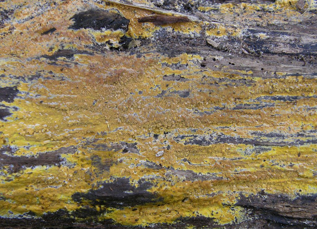 Stereum rugosum (Runzliger Schichtpilz) hat mich mit den komischen, kleinen und wenig zusammenfließenden Fruchtkörpern irritiert. Zudem der auch trotz recht guter Feuchtigkeit nicht richtig erröten wollte, immerhin ein trübes Rotbraun kam heraus.