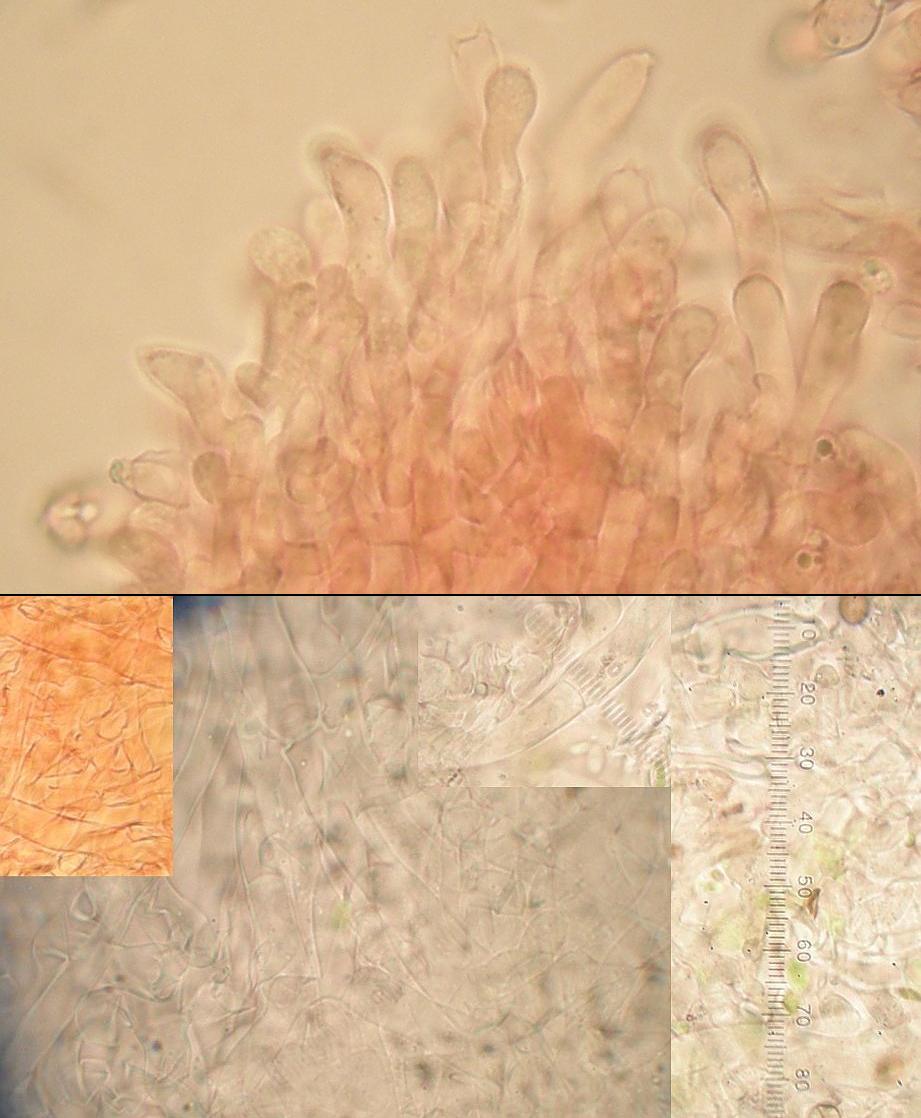 Mikroskopisch ein Pilz mit stark gelatinöser Trama, teils "pelzigen" Hyphen und Septen ohne Schnallen.