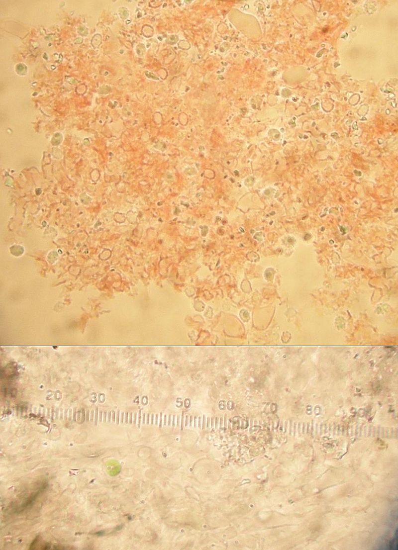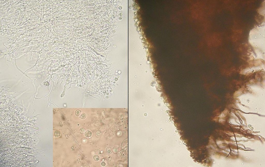 Mikroskopisch hat das Inonotus - artige Hyphen und Konidien. Recht unspektakulär.