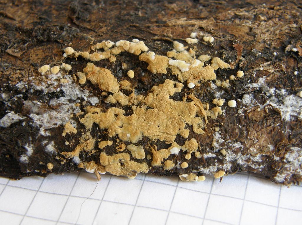 An liegendem Laubholzast; einige der Fruchtkörper sind trotz guter Durchfeuchtung ziemlich am Ausblassen, was eventuell nicht nur altersbedingt sein muss, sondern einfach zur Variationsbreite gehört.