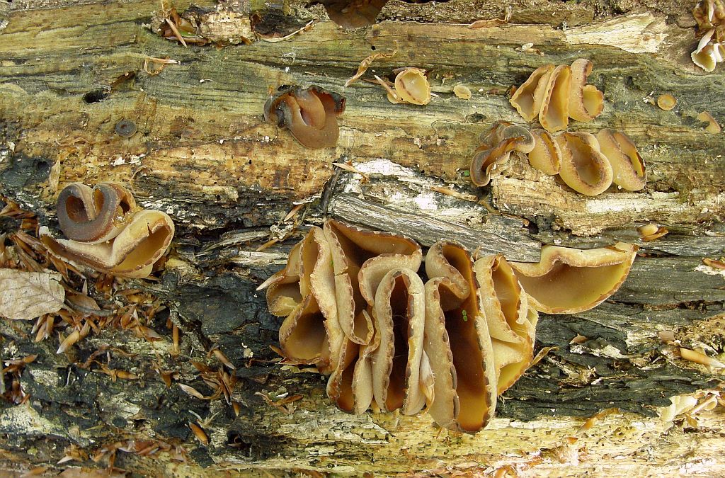 An liegendem Laubholzast; einige der Fruchtkörper sind trotz guter Durchfeuchtung ziemlich am Ausblassen, was eventuell nicht nur altersbedingt sein muss, sondern einfach zur Variationsbreite gehört.