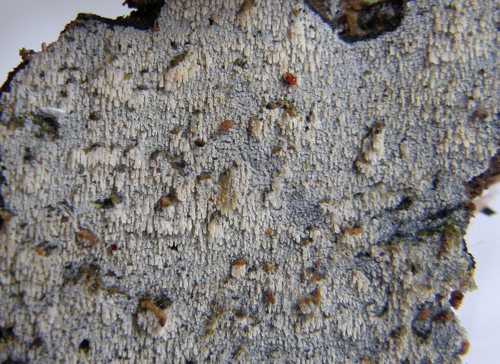Bei der Wuchsweise und an solchem Substrat sollte man nicht mit Steccherinum oreophilum rechnen, der sich im Grunde aber nur durch vorhandene Schnallen von Irpex lacteus unterscheidet.