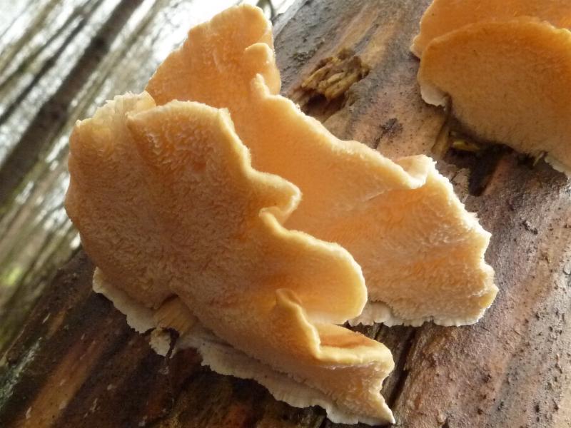 Also Trametes ist es auf jeden fall. Für T. ochracea gefallen mir die Wuchsform und die hellen Farben an der Ansatzstelle nicht.