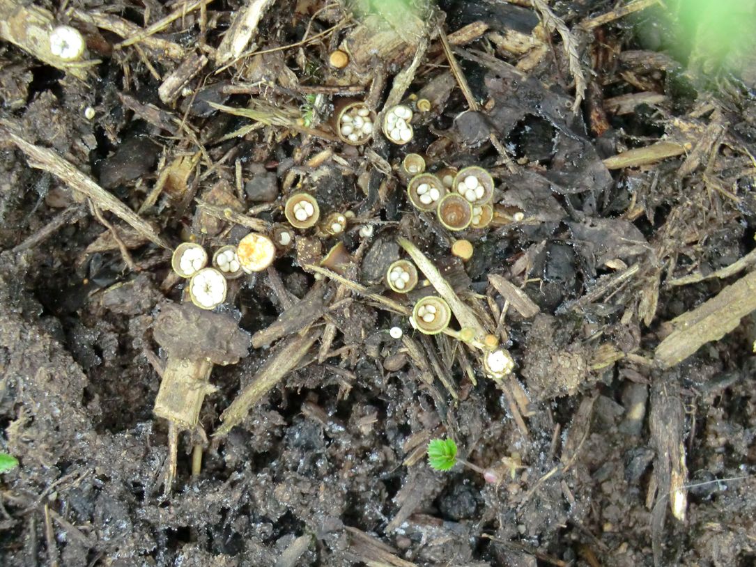 Auf dem Rückweg warf ich mal einen Blick über den Zaun meines Nachbar und sah diese auf Rindenmulch.