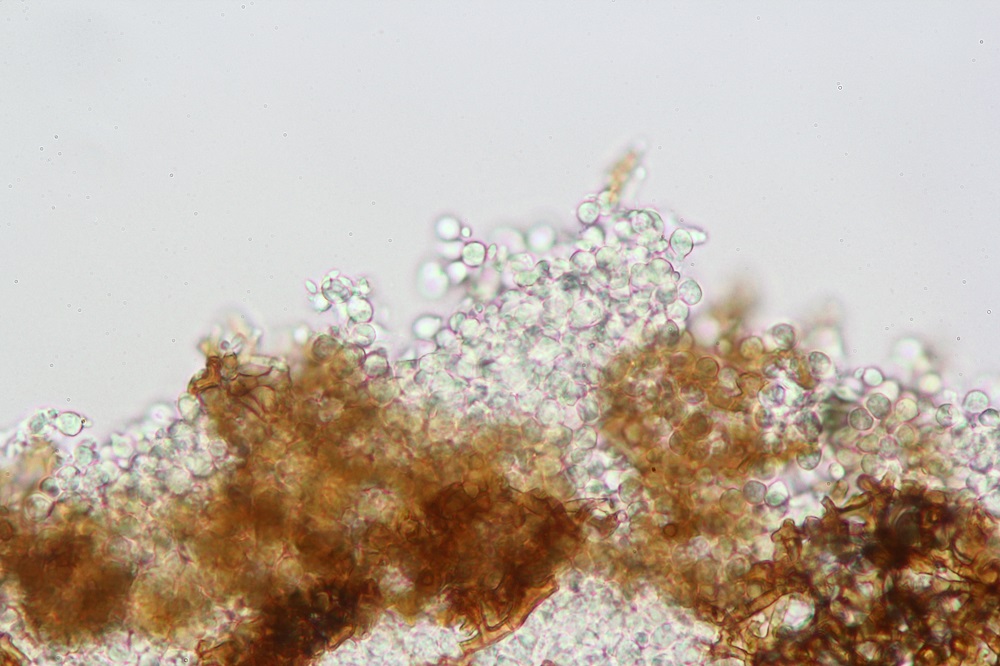 , auch deswegen weil ich bei 2 weißen Pilzen 2 Sporen mit Ornament entdeckt hatte.
