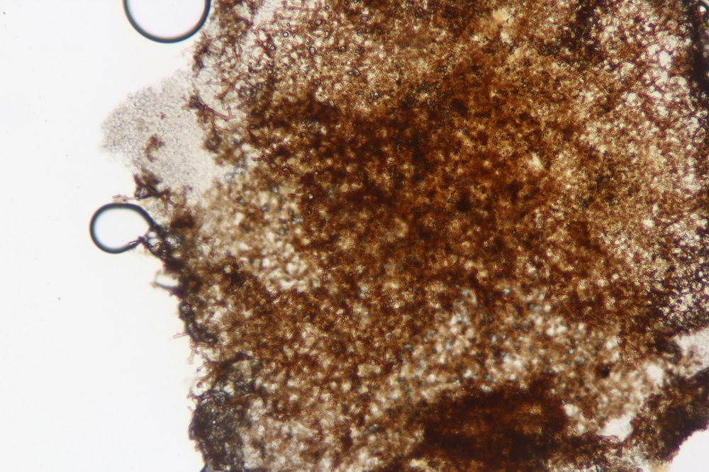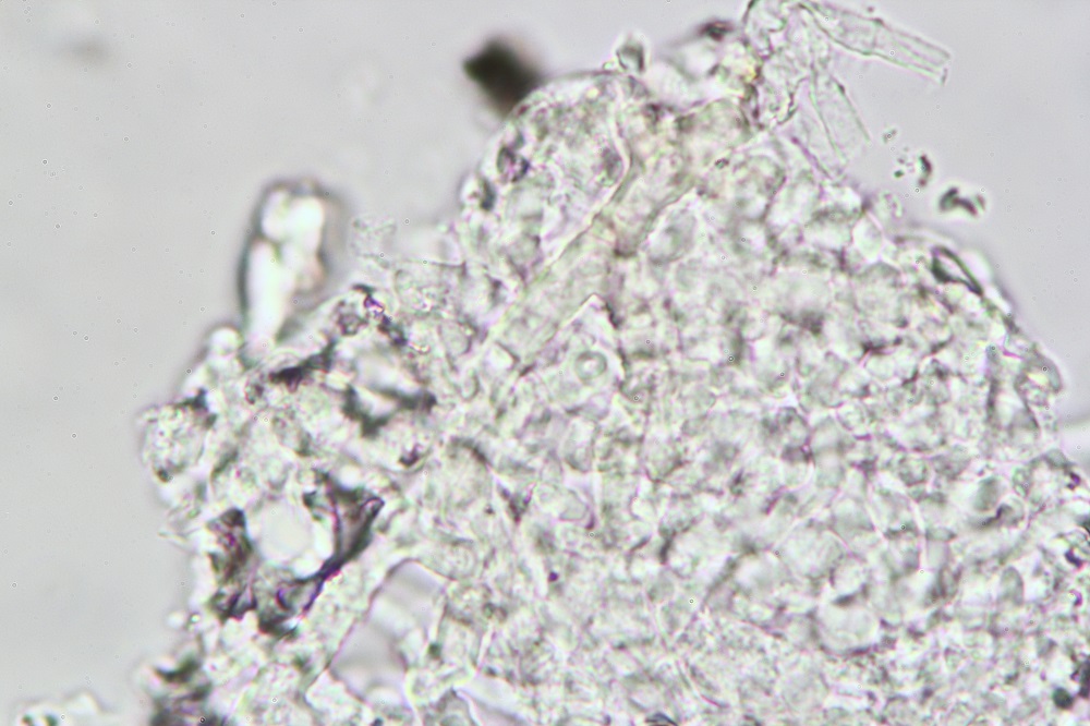 Solche rundlichen Asci (die sind 8-sporig, oder?) habe ich bislang nur bei Hypogäen gesehen. Aber da halt viel größer und - naja, die sehen halt makroskopisch ganz, ganz anders aus. An was ich da noch vage denken muss, wäre Ascocorticium anomalum, aber der hätte keine kugeligen Asci.