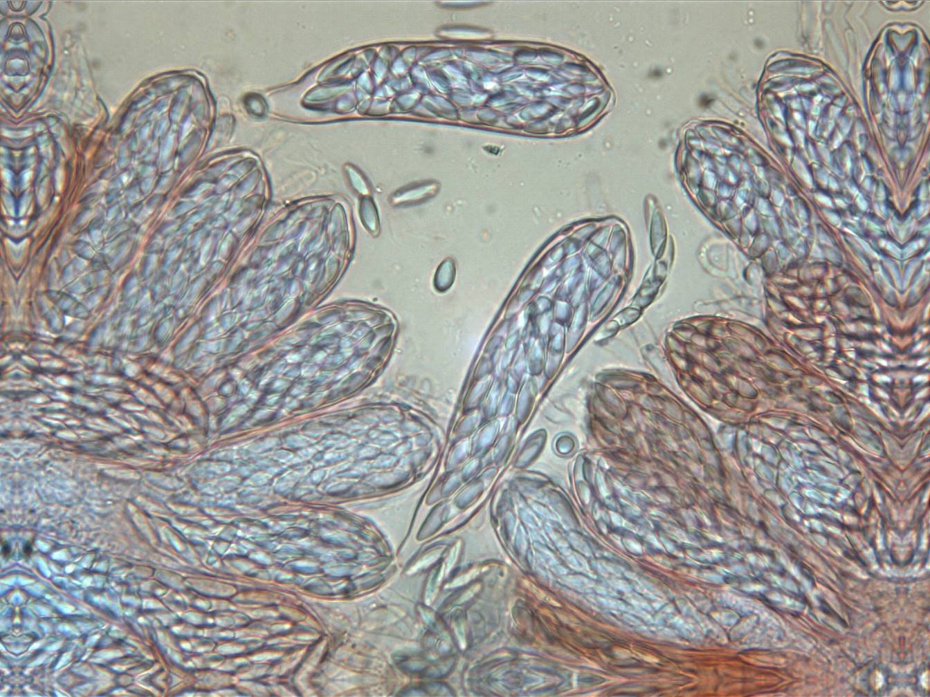 ungewöhnlche Asci: 87 -115 x 52 - 57,5 m µ, Sporen: 9,5 - 10,8 x 4,5 - 4,8 µm