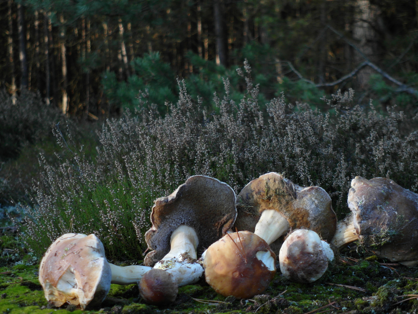 Weitere Steinpilze habe ich dann erst wieder gefunden -irgendwie klassisch- als ich überhaupt nicht mehr damit gerechnet habe und es schon dunkel war: verborgen im Heidekraut in halboffenem Gelände - zuletzt per Taschenlampe.