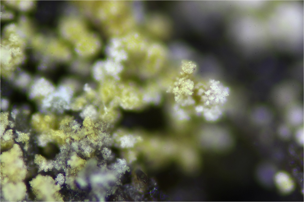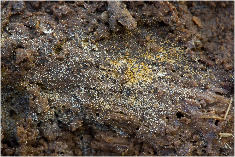 Vor 3 Tagen (10.03.16) fand ich an einem vermoderten Holzblock, winzig kleine weißen und gelbe Pünktchen.