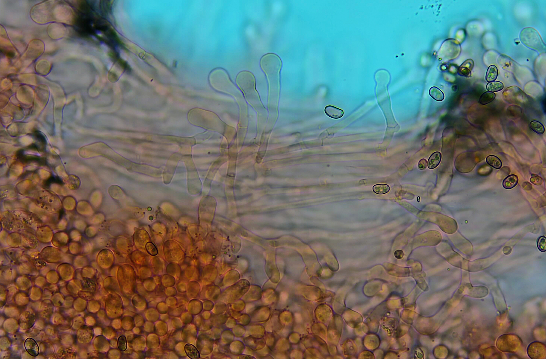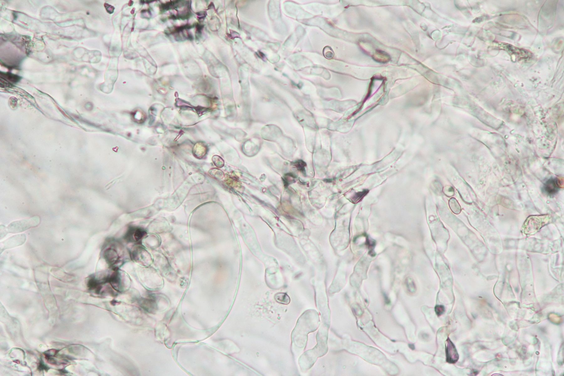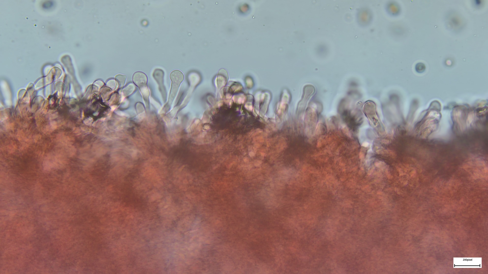 Huthaut ohne Pileozystiden, Cutis aus liegenden Hyphen, feucht als Ixocutis ausgeprägt, Schnallen vorhanden.