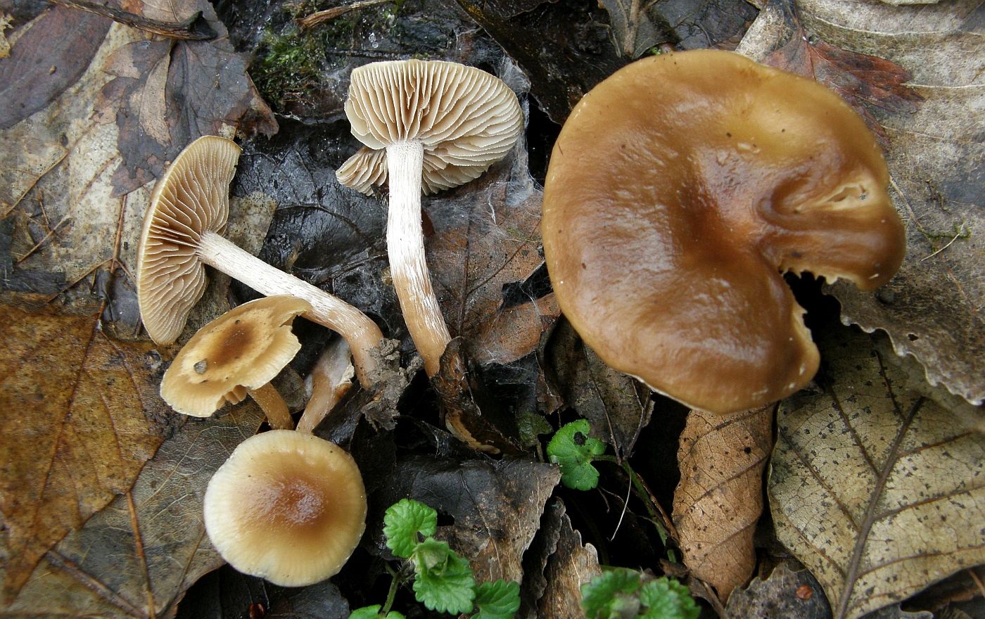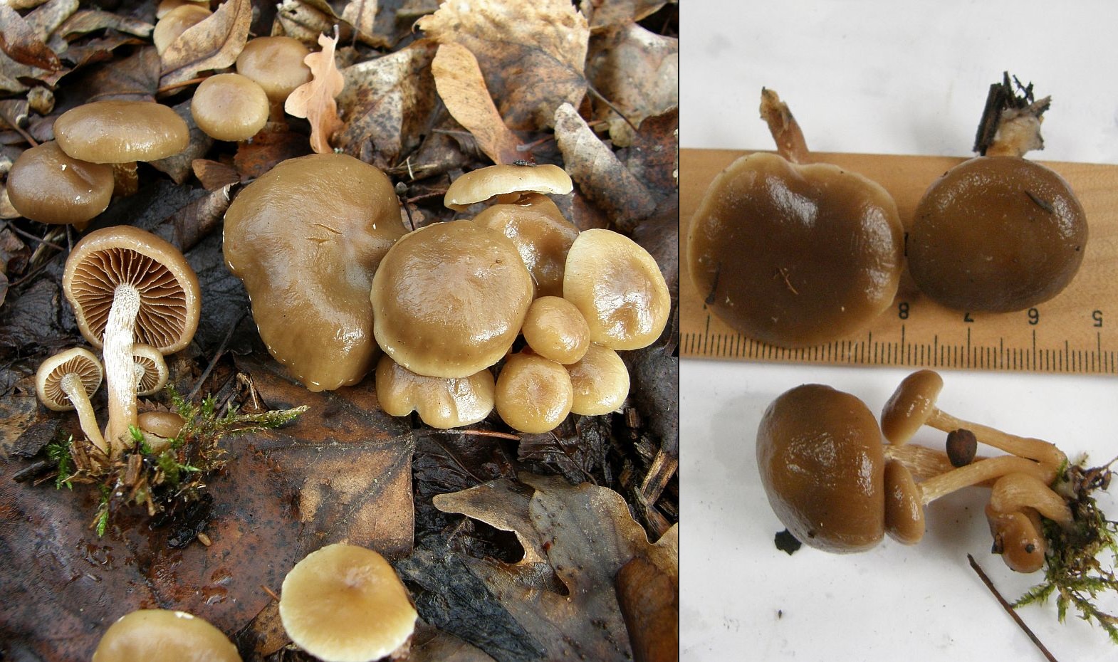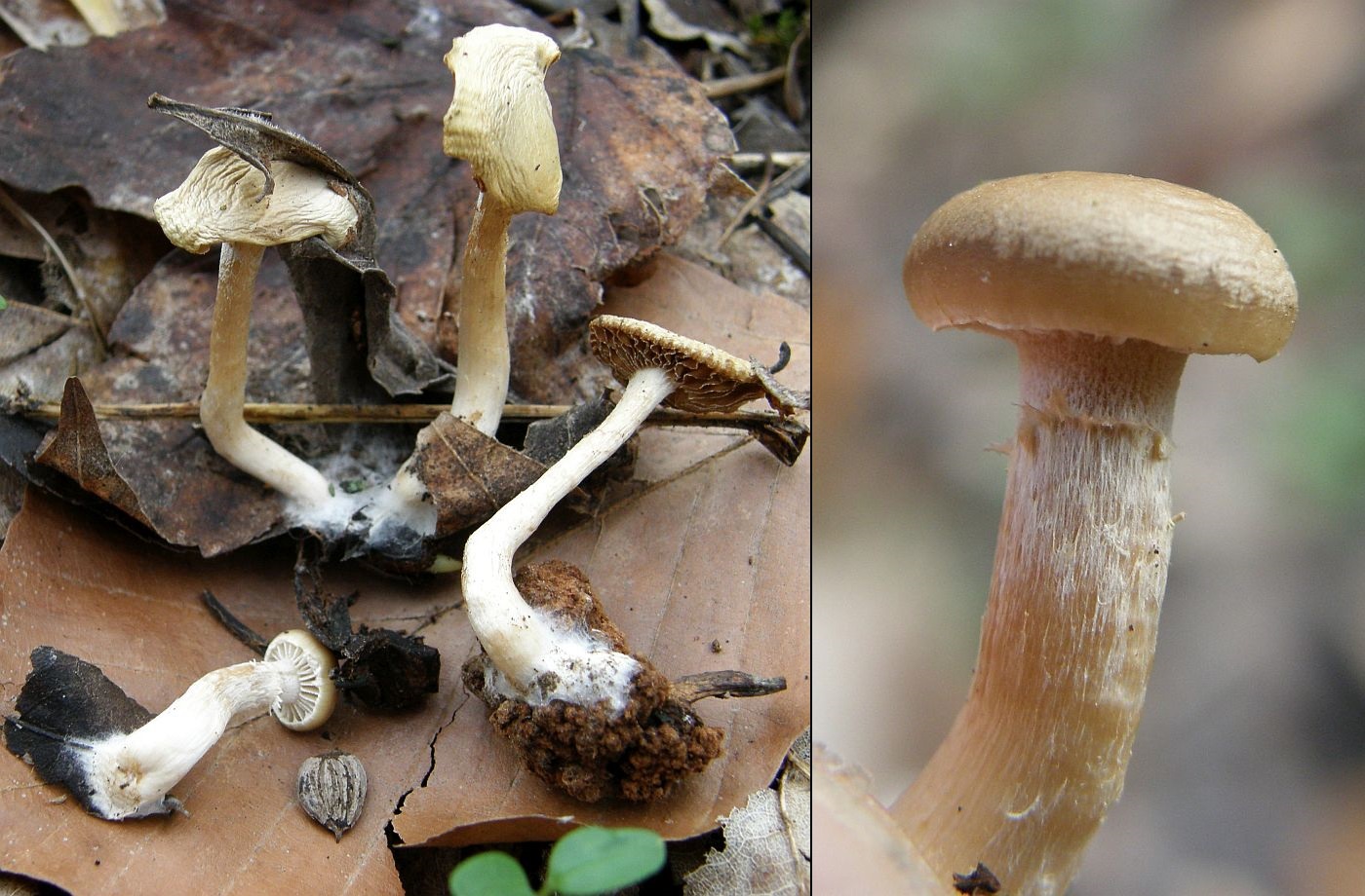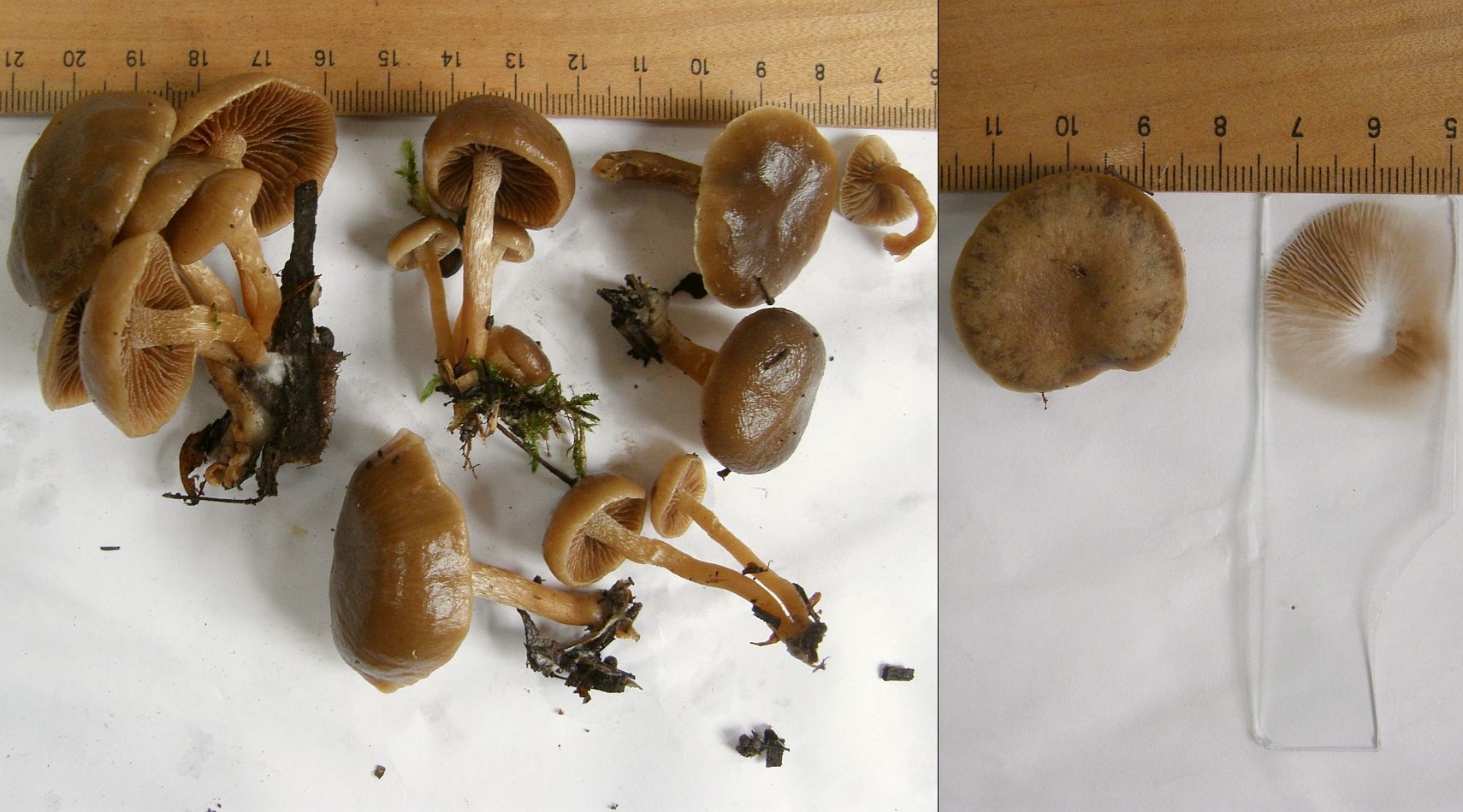 Als Beispiele wären unter anderem das Glattstielige Stockschwämmchen (Kuehneromyces lignicola) erwähnenswert, das eine Art des Berglandes mit eher winterkaltem Klima wäre und an Holz und Holzresten wächst. Mikroskopisch unter anderem durch die Sporen mit deutlichem Keimporus zu unterscheiden.