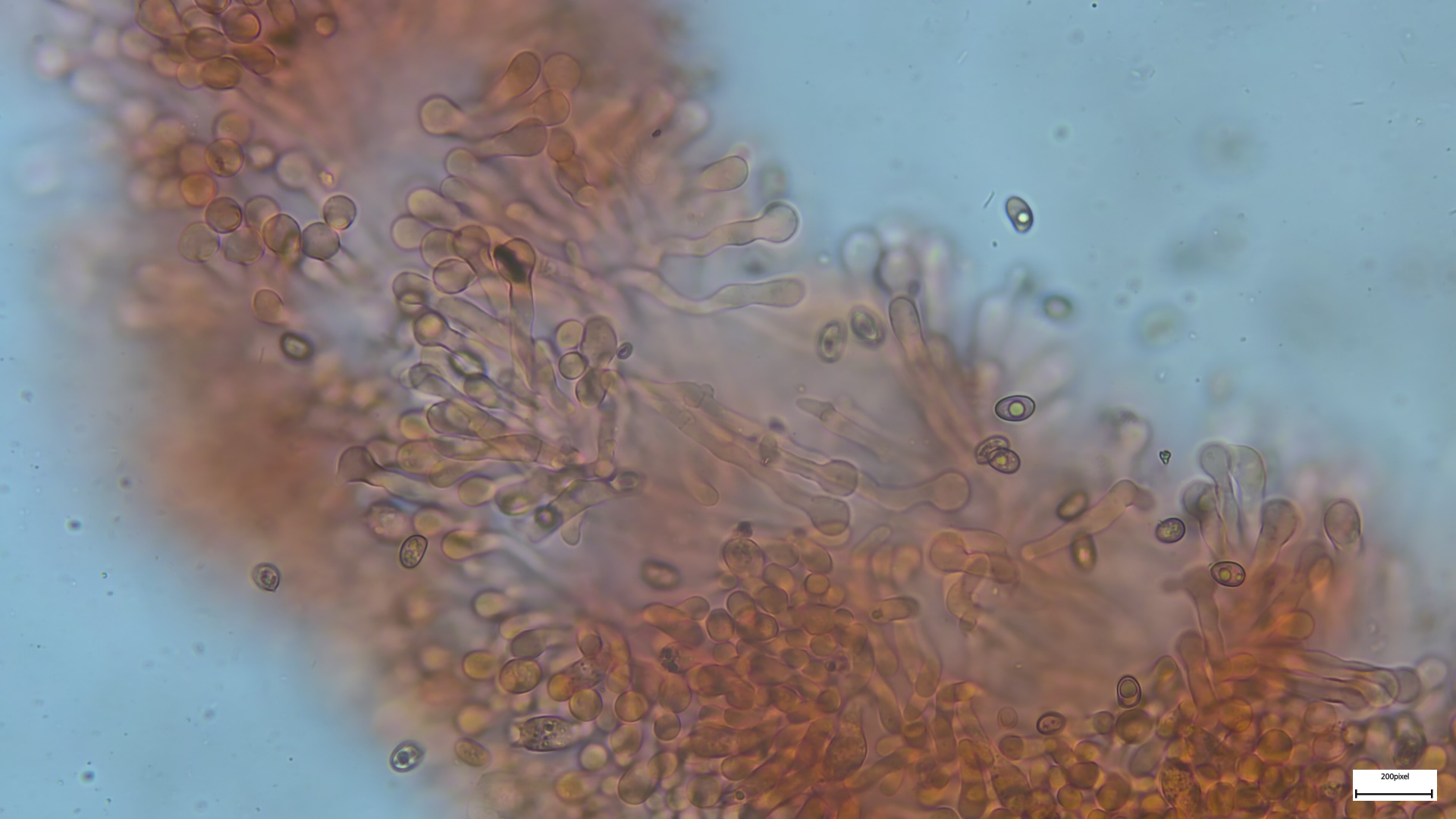Auffallend in erster Linie die Vielzahl an keuligen bis kopfigen Cheilozystiden. Deutlich hervorstehend mit Schnallen an der Basis. Köpfe etwa 10µm breit.