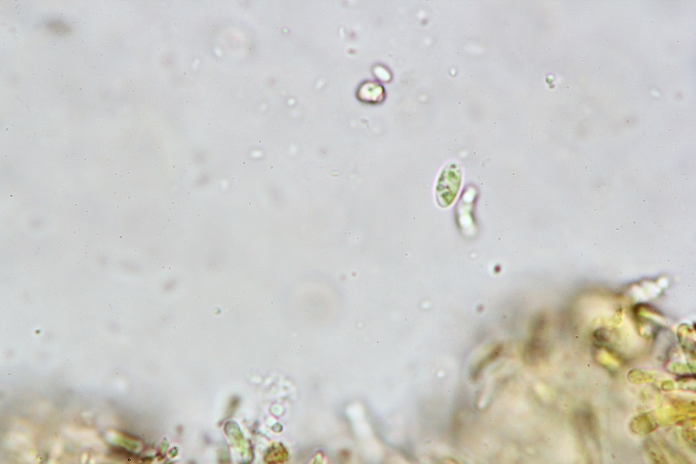 8. Sporengröße: 6-6,5 x 3 µm (da nur 2 Sporen gemessen wurden, habe ich den Wert nichts in Foto eingetragen)