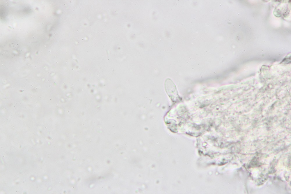 Unter dem Mikro haben sich die Keulchen dann als eine Mucronella entpuppt bzw. ich denke es ist eine Mucronella.