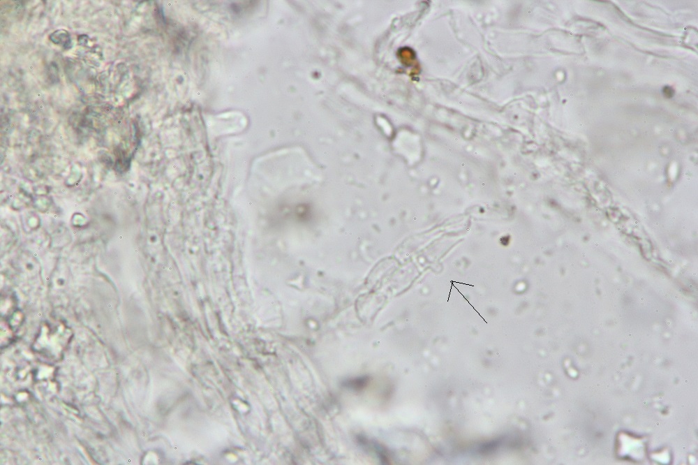 Heute habe ich dann weiter Mikroskopiert und verdutzt festgestellt das der Pilz auf einer Tomentella (auf jeden fall etwas aus dieser Richtung) wächst.