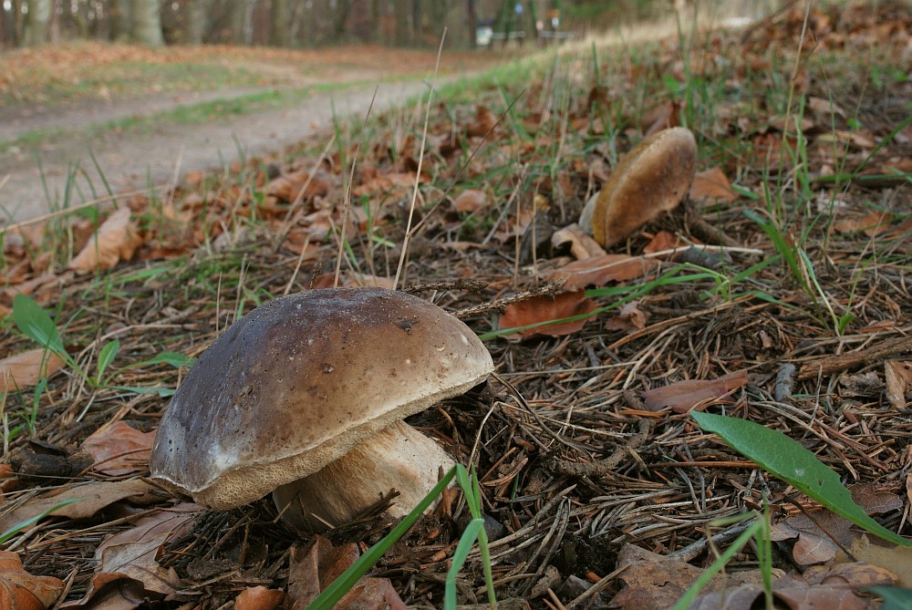 Auf dem Heimweg konnte ich dann an einer sonst eher mittelmäßigen Steinpilzstelle mein Glück kaum fassen, zwei Steinpilze am Wegrand: