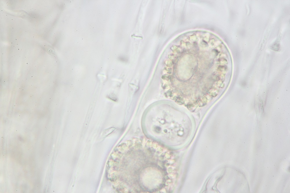 Die Probe ist auch Mittelreif (falls man das so sagen kann :/ ), es scheinen sowohl schon reife Sporen im Ascus zu sein als auch Mittelreif-unreife Sporen.