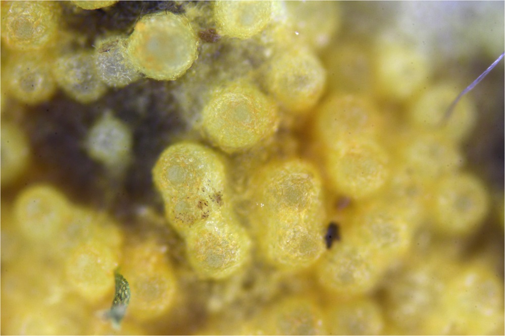 Nach einiger Zeit fand ich reife Sporen, aber wegen anderer Pilzfunde gerat dieser Fund schnell in Vergessenheit und so gab es dann am 7.2.16 eine schimmelige Begegnung ![]()