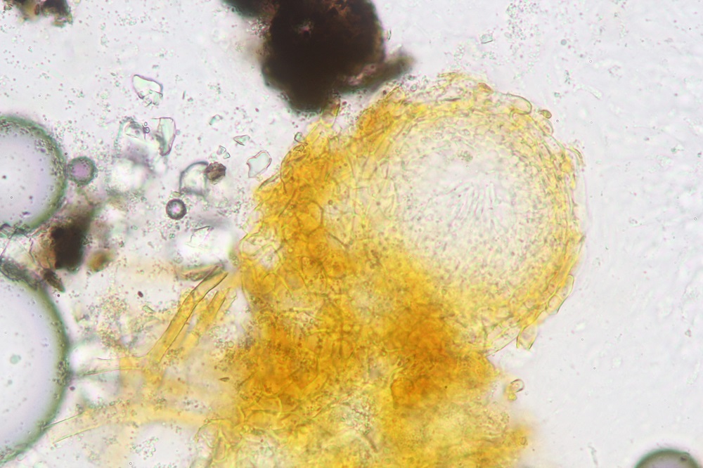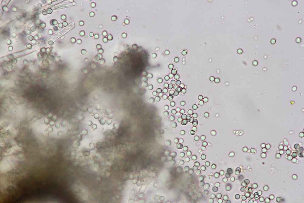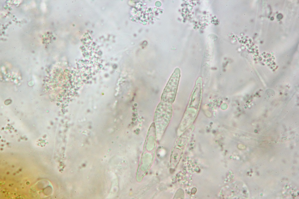 Neugierig habe ich diese Pilze eingesteckt und Mikroskopiert gehabt, aber leider wurde ich enttäuscht, da keine reifen Sporen zu sehen waren.