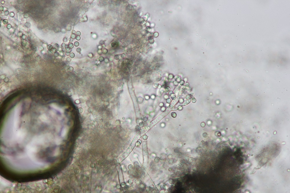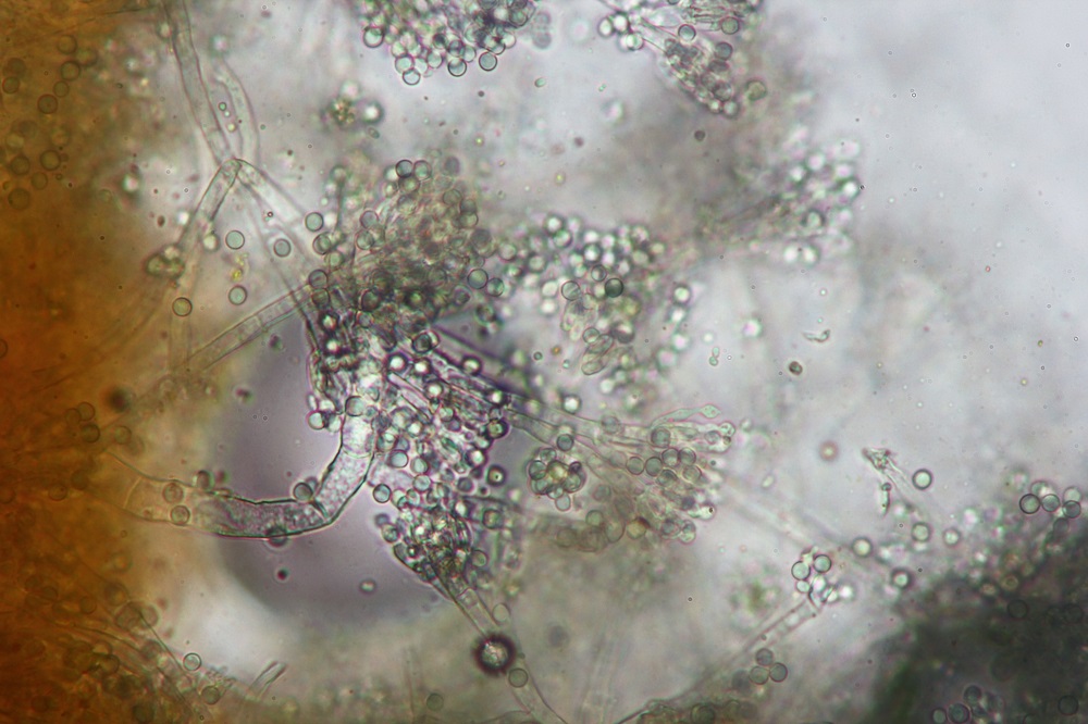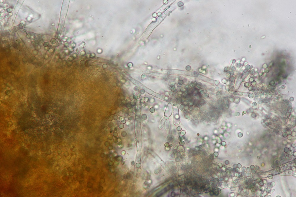 Leider hatte die Kultivierung der beiden Schimmelpilze (Beauveria und dieser Schimmel) nicht geklappt gehabt, aber ich habe ja vorher noch schnell ein paar Mikros von dem Schimmelbefall auf Hypomyces/Tramete gemacht.