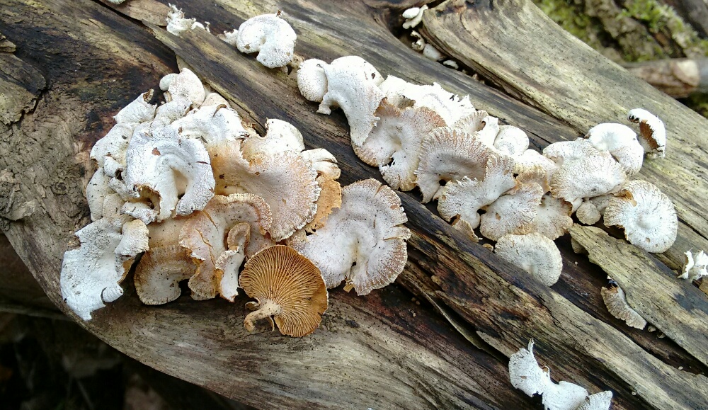 Beim Osterspaziergang haben wir diese Pilze auf verrottendem Buchenholz gefunden.