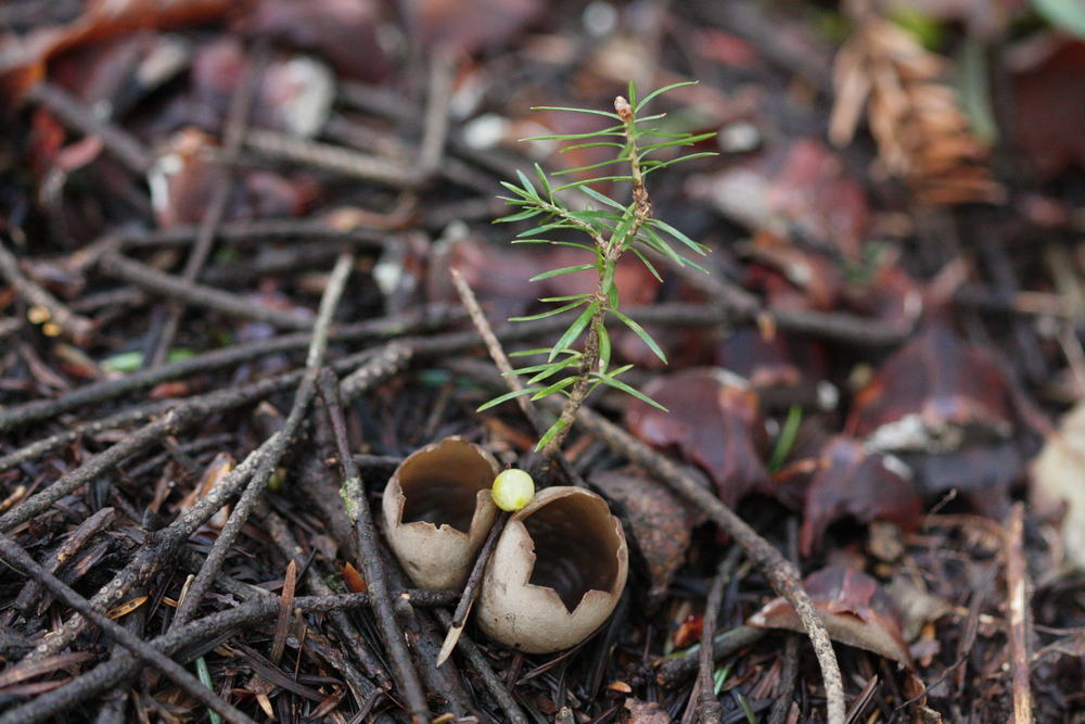 06: Überall leuchtende Punkte am dunklen Waldboden: Pithya vulgaris, Dottergelber Tannenbecherling