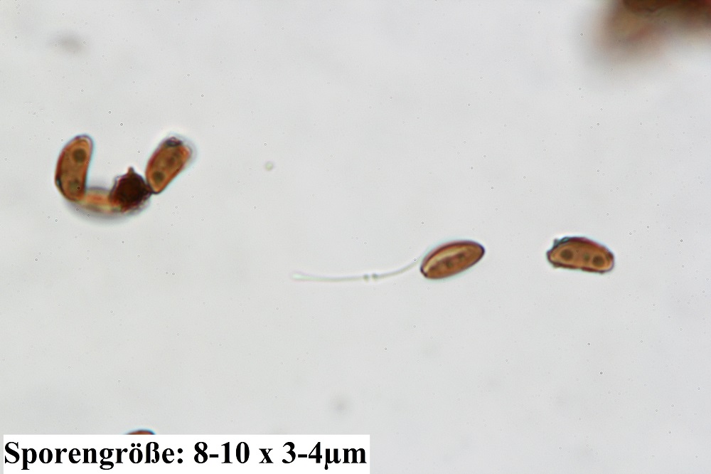 Olivgrüne Pigmente, vorkommen auf Erle, Sporenmaße passen auch.