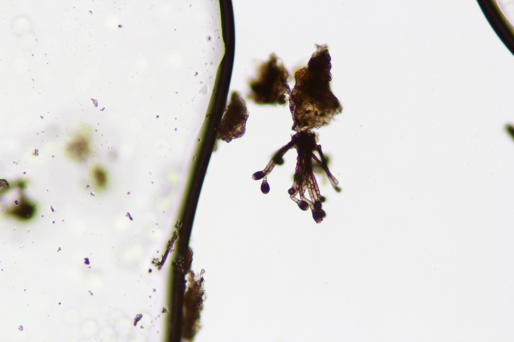 Am 1.4.16 fand ich auf einer Probe (Fagus Holzstück mit Kernpilzen), diesen interessanten Hyphomyceten, der sich als Phragmocephala elliptica entpuppt hat und den ich euch gerne zeigen möchte.